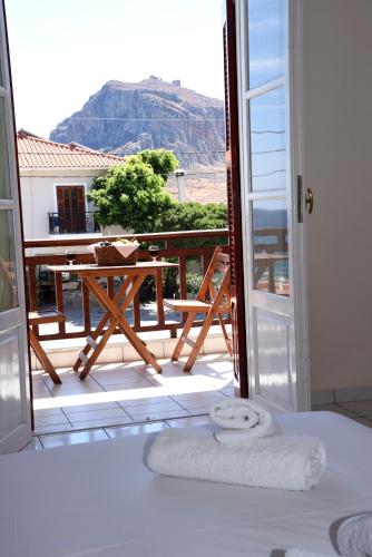 Den gunstige beliggenheten i sentrum av Monemvasia gir deg muligheten til å bade i det blå Myrtoiske hav, som ligger bare 40 meter fra hotellet. Eventuelt kan du ta en spasertur på brosteinsgatene og smugene i denne slottsbyen. Hotellet kan være utgangspunkt for utflukter til steinslottene på Mani, grottene i Diro og de bysantinske slottene og kirkene ved festningen i Mistra. Etter en dag på oppdagelsesferd kan du vende tilbake til hotellet og nyte en drink i baren på terrassen, som tilbyr flott utsikt over den blomstrende hagen.