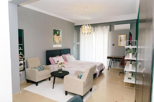 Cosy Downtown Studio - Suite tilbyr overnatting med balkong og vannkoker. Her har du utsikt over byen, og du bor bare 30 kilometer unna Porto Lagos. Overnattingsstedet ligger 48 kilometer fra Xanthi antropologiske folkemuseum og 48 kilometer fra Antika-plassen.