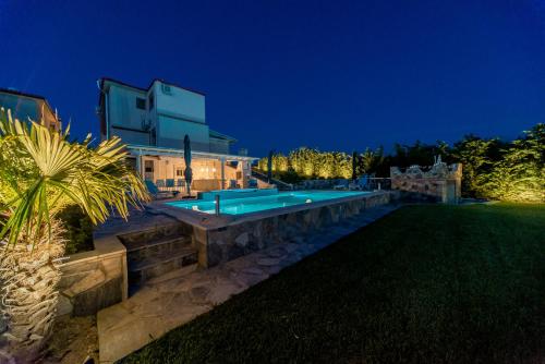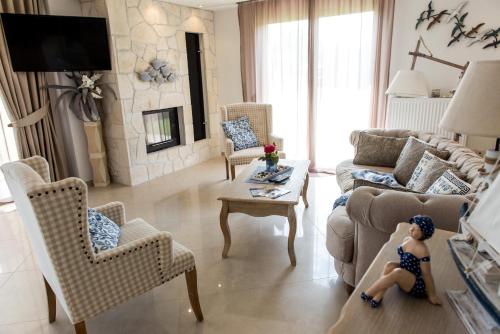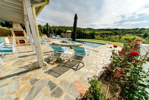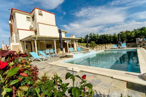 Villa Alina ligger bare 14 minutters gange unna Hanioti strand og tilbyr overnatting i Hanioti med tilgang til et utendørsbasseng og en fellesstue, i tillegg til et felleskjøkken. Denne villaen har privat basseng, hage, grill, gratis WiFi og gratis privat parkering.