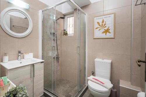 Denne leiligheten har terrasse med utsikt mot sjøen og har også TV (flatskjerm), et velutstyrt kjøkken med et kjøleskap, en stekeovn og kokeplater, så vel som 1 bad med dusj og hårføner.