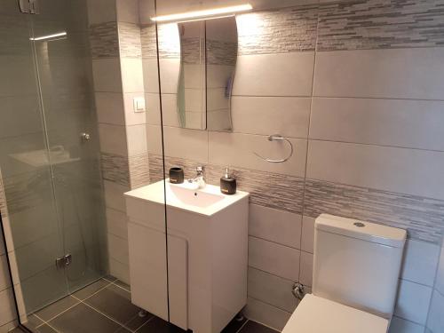 Denne leiligheten har utsikt mot byen og sjøen og har 2 soverom og terrasse. Denne leiligheten med klimaanlegg består av stue, kjøkken som er utstyrt med kjøleskap og kaffemaskin, og 1 bad med dusj og gratis badeprodukter.
