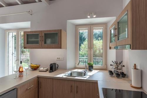 The Olive Yard Corfu ligger i Karousádes og har privat basseng. Her får du et utendørsbasseng, en terrasse, utsikt mot fjellet og gratis WiFi over hele overnattingsstedet.