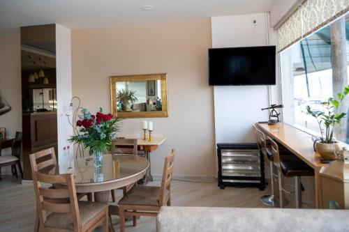 A buffet breakfast can be enjoyed daily at the dining area. Guests can also enjoy a drink or cocktail at the stylish lounge area of Kronos featuring leather furnishings and enjoying panoramic views of the Cretan Sea.