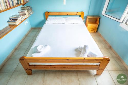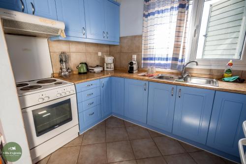 Villa Evgenia har 3 soverom, et kjøkken med kjøleskap og stekeovn, vaskemaskin og 2 bad. Håndklær og sengetøy finnes tilgjengelig i feriehuset.