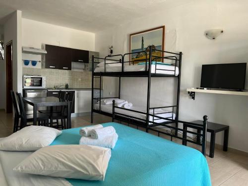 Bare 1 minutters gange fra Megali Ammos-stranden ligger Liani Ammos. Dette overnattingsstedet har et treningsstudio, en hage og tilgang til gratis WiFi. Boenhetene har klimaanlegg og balkong.