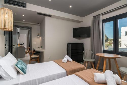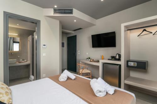 På Afroessa Milos bor du på rom med klimaanlegg, skrivebord, vannkoker, et kjøleskap, safe, TV (flatskjerm) og eget bad med dusj. På overnattingsstedet er alle rommene utrustet med sengetøy og håndklær.