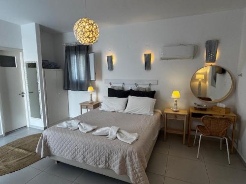 Sentrum av livlige Parikia, hovedstaden i Paros, ligger bare 500 meter fra overnattingsstedet, og tilbyr suvenirbutikker, barer og restauranter. Det venetianske slottet ligger kun 5 minutters gange unna.