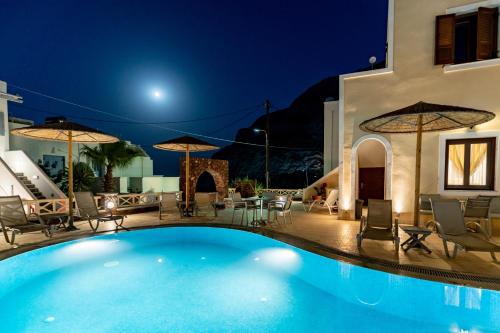Du kan slappe av med et glass ved utendørsbassenget. I nærheten av hotellet finner du flere tavernaer og restauranter.