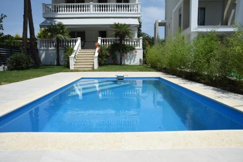 Divine Villa ligger i Toroni, 0 minutters gange unna Toroni strand og 1,2 kilometer unna Paralia Korakas-stranden, og tilbyr gratis WiFi, et sesongåpent utendørsbasseng og klimaanlegg. Denne villaen har privat basseng, hage og gratis privat parkering.