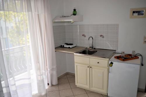 Bare 1 minutters gange fra Potos-stranden ligger Evaggelou Rooms, som har en terrasse og tilbyr boenheter med balkong.
