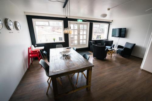 Apótek Guesthouse ligger i Akureyri, med Godafoss bare 34 kilometer unna. Overnattingsstedet har en fellesstue, røykfrie rom, gratis WiFi over hele overnattingsstedet og en terrasse. Enkelte av rommene på overnattingsstedet har balkong med utsikt over byen.
