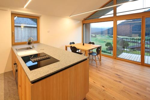 The apartment provides guests with a terrace, mountain views, a seating area, satellite flat-screen TV, a fully equipped kitchen with a dishwasher and an oven, and a private bathroom with walk-in shower and a hair dryer. A microwave, a toaster and fridge are also provided, as well as a coffee machine and a kettle. At the apartment complex, all units come with bed linen and towels.