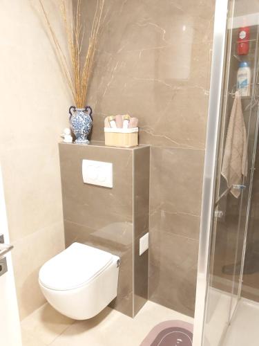 Denne leiligheten har 1 soverom, kjøkken med et kjøleskap og en oppvaskmaskin, TV (flatskjerm), sittehjørne og 1 bad er utstyrt med dusj. Håndklær og sengetøy finnes tilgjengelig i leiligheten.