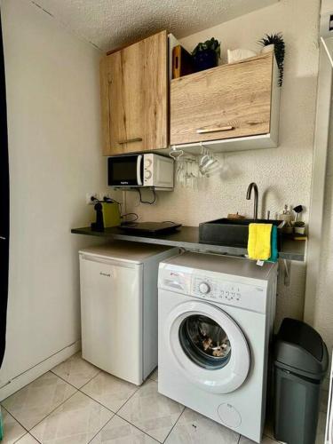 Suite Caraïbes 2 - Superbe Studio Cosy Vue Mer har 1 soverom, et minikjøkken med kjøleskap og mikrobølgeovn, vaskemaskin og 1 bad med gratis badeprodukter og hårføner. Håndklær og sengetøy finnes tilgjengelig i leiligheten.