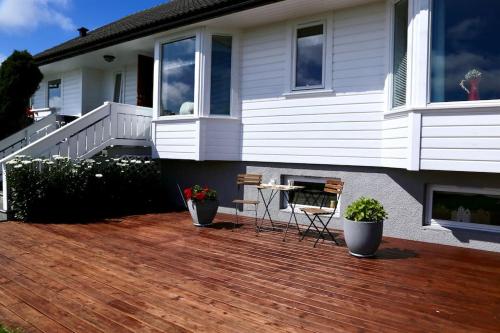 I Sandve, 2,6 kilometer fra Håland-stranden, ligger Sandve, som har en hage, gratis privat parkering og en terrasse. Fra rommet ditt har du utsikt over sjøen.