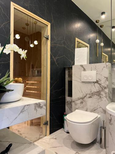 Family & Business Sauna Apartments No15 Leśny nad Zalewem Cedzyna Unikat - 3 Bedroom with Private Sauna, Bath with Hydromassage, Terrace, Garage, Catering Options kan tilby ulike fasiliteter for velvære, blant annet badstue og boblebad. Lekeplass finnes tilgjengelig på overnattingsstedet, og det er tilrettelagt for både skiturer og sykkelturer i nærheten av overnattingsstedet.