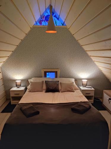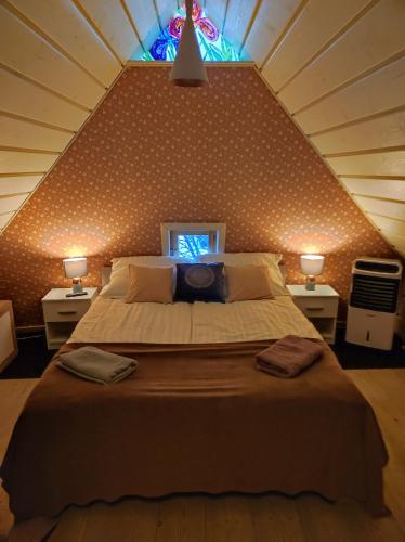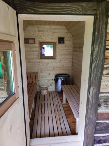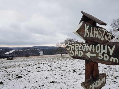Jabłoniowy Sad Kalwaria Pacławska har 2 soverom, 1 bad med hårføner, stue og minikjøkken med kjøleskap. Håndklær og sengetøy finnes tilgjengelig på hytta.