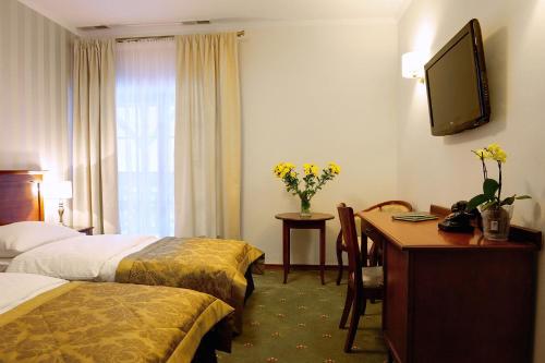 På Hotel Kazimierski Zdrój har alle rommene skrivebord. I tillegg til eget bad med gratis badeprodukter har alle rommene på overnattingsstedet TV (flatskjerm) og klimaanlegg. Enkelte av rommene er utstyrt med balkong. På Hotel Kazimierski Zdrój er alle rom utrustet med sengetøy og håndklær.