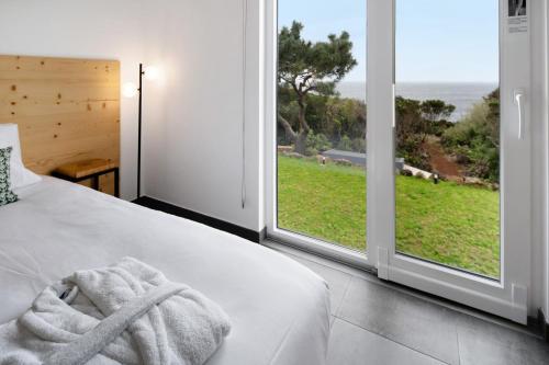 Dette feriehuset har utsikt mot sjøen og hagen og har 2 soverom og terrasse. Dette feriehuset med klimaanlegg består av stue, kjøkken som er utstyrt med kjøleskap og kaffemaskin, og 2 bad med dusj og gratis badeprodukter.