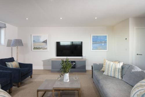 Harlyn Penthouse, Harlyn Bay tilbyr overnatting med uteplass og kaffemaskin. Her har du utsikt over sjøen, og du bor bare 1 minutters gange unna Harlyn Bay Beach. På dette strandnære overnattingsstedet har du tilgang til balkong, gratis privat parkering og gratis WiFi.