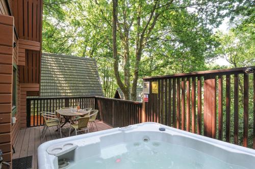 Lodge Nine har 3 soverom, 2 bad med dusj og boblebad, sittehjørne og kjøkken med kjøleskap. TV og spillkonsoll står til disposisjon.