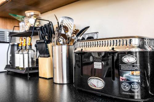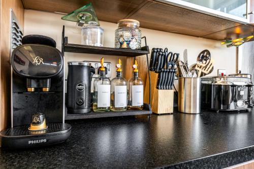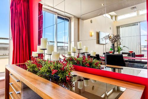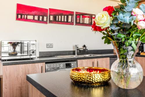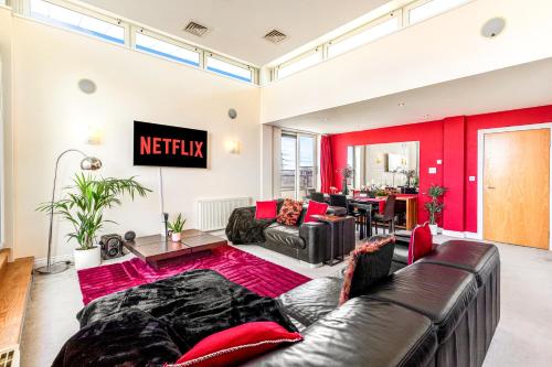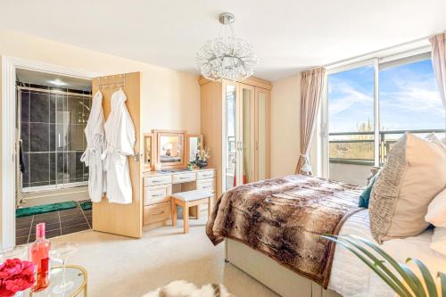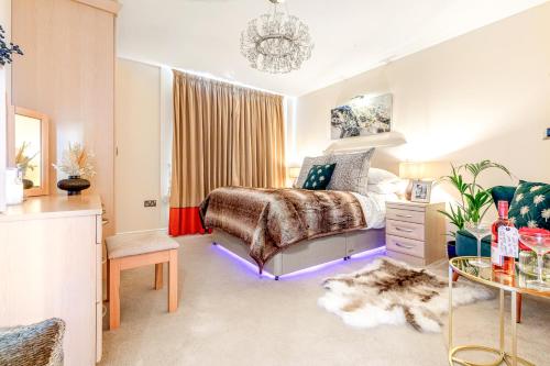 Luxury suite in stunning penthouse with city views ligger i Leicester og har en hage, en fellesstue og en terrasse i tillegg til gratis WiFi og utsikt over byen. På dette overnattingsstedet har du tilgang til balkong og gratis privat parkering.
