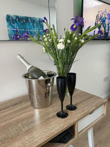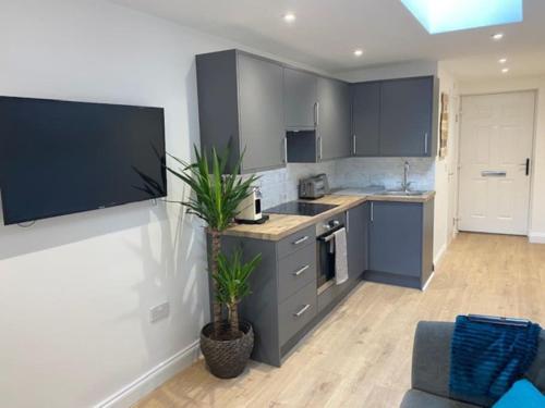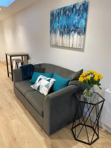 Stylish 1 bedroom studio outdoor area and hot tub ligger i Bournemouth, bare 1,9 kilometer fra Boscombe Beach, og tilbyr overnatting med en hage, en terrasse og gratis WiFi. Denne leiligheten har uteplass.