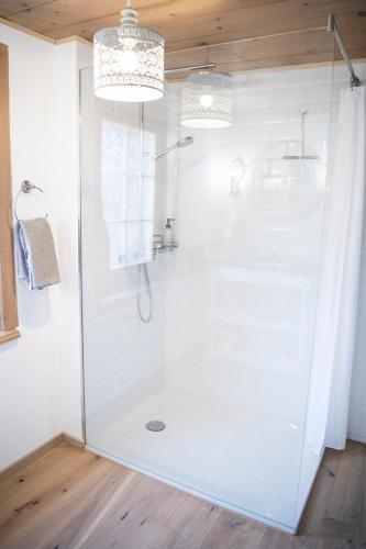 Det er eget bad med dusj, gratis badeprodukter, hårføner og badekåpe i alle boenhetene.