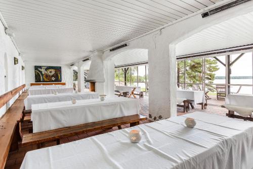 Du kan nyte sjøkrepssuppe og andre lokale spesialiteter i restauranten på Ullinge Hotel. En møblert terrasse er tilgjengelig når været er fint.