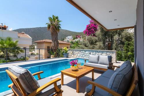 I Kalkan, 2,3 kilometer fra Kalkan offentlige strand og 29 kilometer fra De lykiske klippegravene, ligger Gorgeous 3 Bedroom Property at Kalamar Bay. Her tilbys overnatting med gratis WiFi, klimaanlegg, en hage og en terrasse.. Dette overnattingsstedet har balkong og basseng og gir utsikt over hagen.
