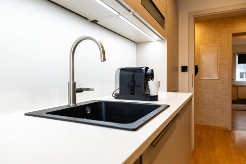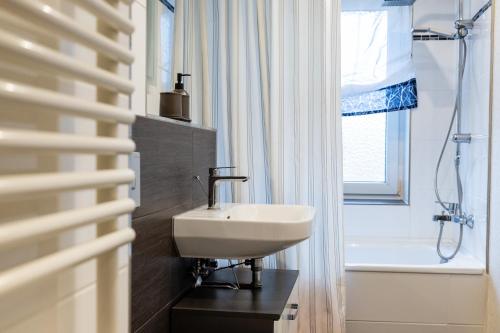 På Moderne 4 Zimmer Wohnung vollausgestattet und Möbliert har alle rommene skrivebord, TV (flatskjerm), eget bad og sengetøy. Rommene har klesskap og kaffemaskin.