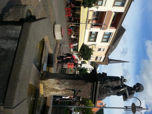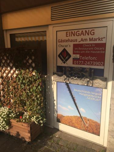 På Pension "Am Markt" har hvert av rommene klesskap, TV (flatskjerm), eget bad, sengetøy og håndklær.