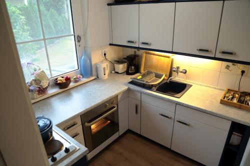 Minikjøkkenet har et kjøleskap, en stekeovn og kokeplater, og du har dessuten tilgang til badekar eller dusj, gratis badeprodukter og hårføner.