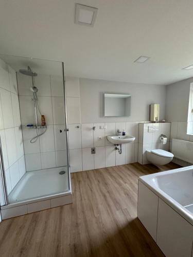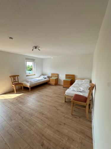 Unterkunft für Monteure har 5 soverom, 3 bad med badekar eller dusj, sittehjørne og kjøkken med kjøleskap. Håndklær og sengetøy finnes tilgjengelig i feriehuset.