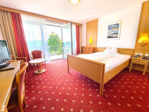 På Thermenhotel Tannenhof - Ihr Wohlfühl-Hotel har alle rommene skrivebord, TV (flatskjerm), eget bad, sengetøy, håndklær og balkong med utsikt over byen. Alle rommene har safe, og enkelte av rommene gir utsikt over bassenget. Rommene har et kjøleskap.