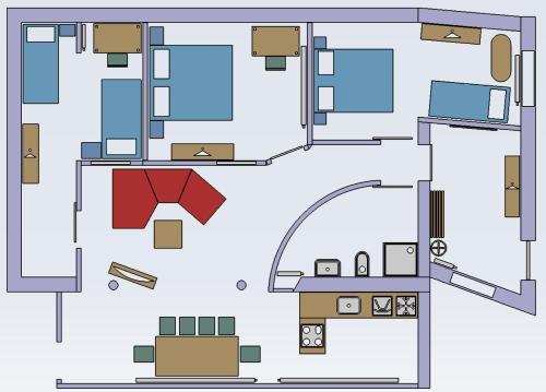 Denne leiligheten består av 3 soverom, stue med TV (flatskjerm), kjøkken med spiseplass og 1 bad med dusj og vaskemaskin. Håndklær og sengetøy finnes tilgjengelig i leiligheten.