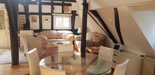 En terrasse finnes tilgjengelig på overnattingsstedet, og det er tilrettelagt for fotturer i nærheten av Penthouse im historischen Fachwerkhaus mit grosser Dachterrasse an zentralster Lage.