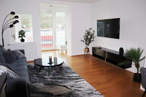 På Exklusives vollmöbliertes Apartment im Herzen von Bad Mergentheim har alle rommene skrivebord, TV (flatskjerm), eget bad, sengetøy og håndklær. Rommene har et kjøleskap.