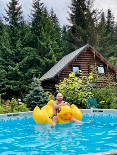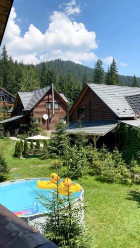 Cottage PolyaNitsa окремий котедж з каміном ligger i Polyanitsa i Bukovel, bare 29 kilometer unna Waterfall Probiy, og har gratis sykler, et sesongåpent utendørsbasseng, en hage og et privat strandområde. På dette overnattingsstedet har du tilgang til terrasse, bordtennisbord, gratis privat parkering og gratis WiFi.