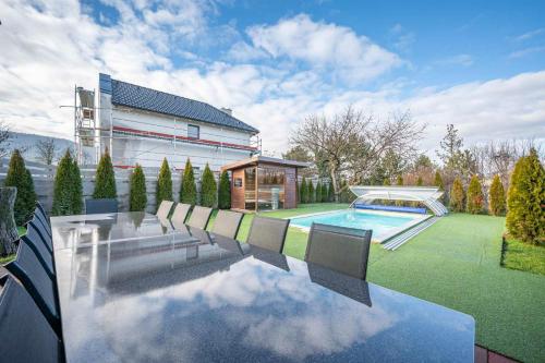 Panorama Buda ligger i Budapest og tilbyr terrasse med utsikt mot byen og fjellet, i tillegg til helårsåpent utendørsbasseng, badstue og boblebad. Denne villaen har privat basseng, hage, grill, gratis WiFi og gratis privat parkering.
