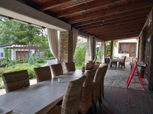Bare 6,5 kilometer fra Sümeg slott ligger Őshaza Vendégház. Dette overnattingsstedet har en hage og boenheter med klimaanlegg, uteplass og gratis WiFi. Boenhetene har badstue.
