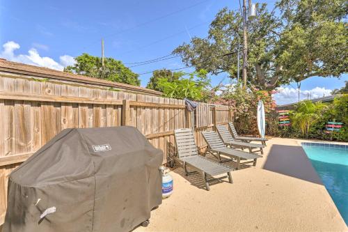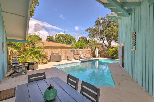 Cape Canaveral Cottage with Pool - Walk to Beach! ligger i Cape Canaveral, 8 minutters gange fra Cape Canaveral Beach, og har en spa- og velværeavdeling, utendørsbasseng, gratis WiFi og en døgnåpen resepsjon. Dette feriehuset har balkong og klimaanlegg.