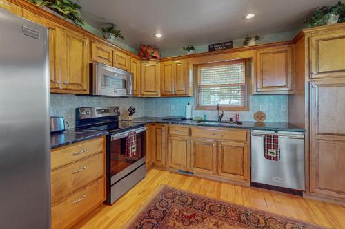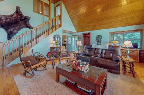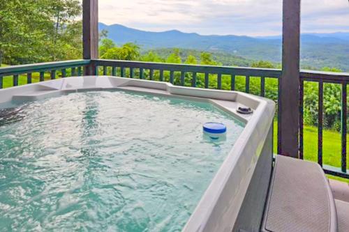 Nature's Embrace Cabin ligger i Salem i North Carolina, og har balkong og utsikt over fjellet. Dette feriehuset har uteplass.