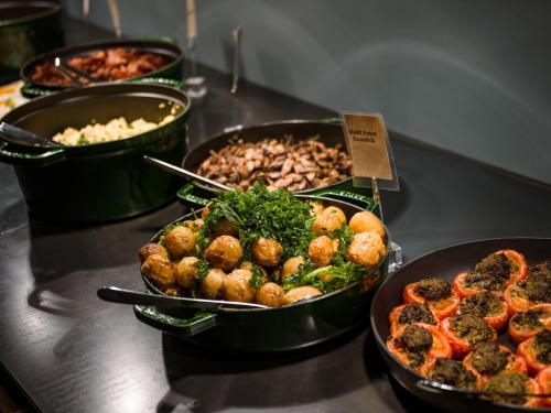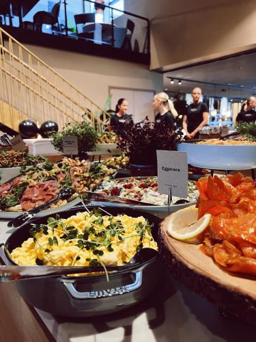 The hotel has a total of 18 meeting rooms with various capacities. From your hotel room, you can enjoy stunning views of Tillermarka, the Trondheim Fjord, or Granåsen. In the restaurant, The Social Bar & Bistro, you will experience fantastic flavors, featuring the best classic bistro dishes with a modern twist, or a delicious snack platter filled with Italian temptations.