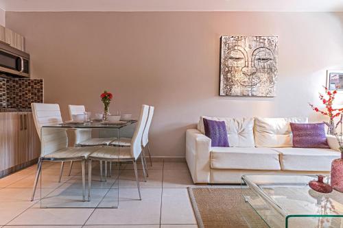 W apartamencie zapewniono sypialnię (1), łazienkę (1), pościel, ręczniki, jadalnię oraz kuchnię z pełnym wyposażeniem. Do dyspozycji Gości jest także telewizor z płaskim ekranem oraz taras z widokiem na basen. Obiekt zapewnia pościel i ręczniki za dodatkową opłatą.