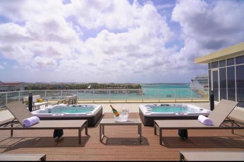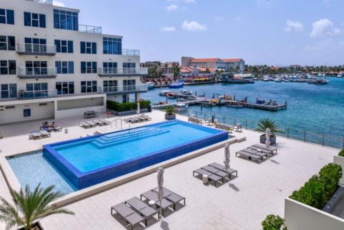 Obiekt Stylish luxury condo, central location, ocean view, pool, gym położony jest w miejscowości Oranjestad. Oferuje on basen, centrum fitness, bar, bezpłatne Wi-Fi, a także widok na morze.