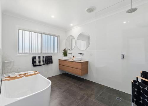 Obiekt Marie's Rest położony jest w miejscowości Tomakin i oferuje klimatyzację, patio oraz bezpłatne WiFi. Odległość ważnych miejsc od obiektu: Przystań w Batemans Bay – 14 km. Oferta domu wakacyjnego obejmuje prywatny basen.