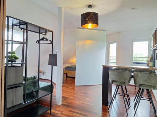 Oferta apartamentu obejmuje sypialnię (1), salon, kuchnię z pełnym wyposażeniem, w tym lodówką i ekspresem do kawy, a także łazienkę (1) z prysznicem oraz bezpłatnym zestawem kosmetyków. Goście mają do dyspozycji telewizor z płaskim ekranem.