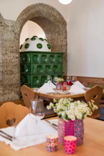 The bright and stylish rooms offer free WiFi, a flat-screen satellite TV, and a bathroom. They offer views of Golling Castle or the small vineyard.