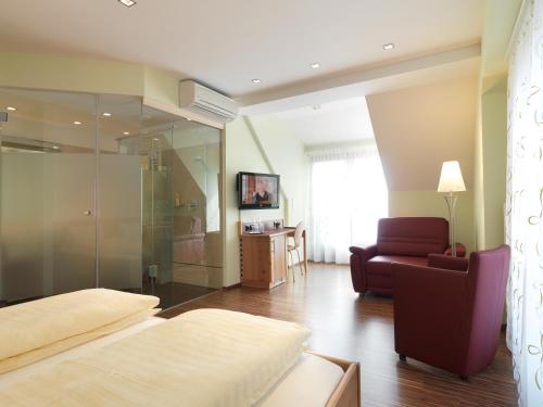 All of the modern and air-conditioned rooms feature a flat-screen satellite TV, a minibar and a bathroom with a bath or a shower.